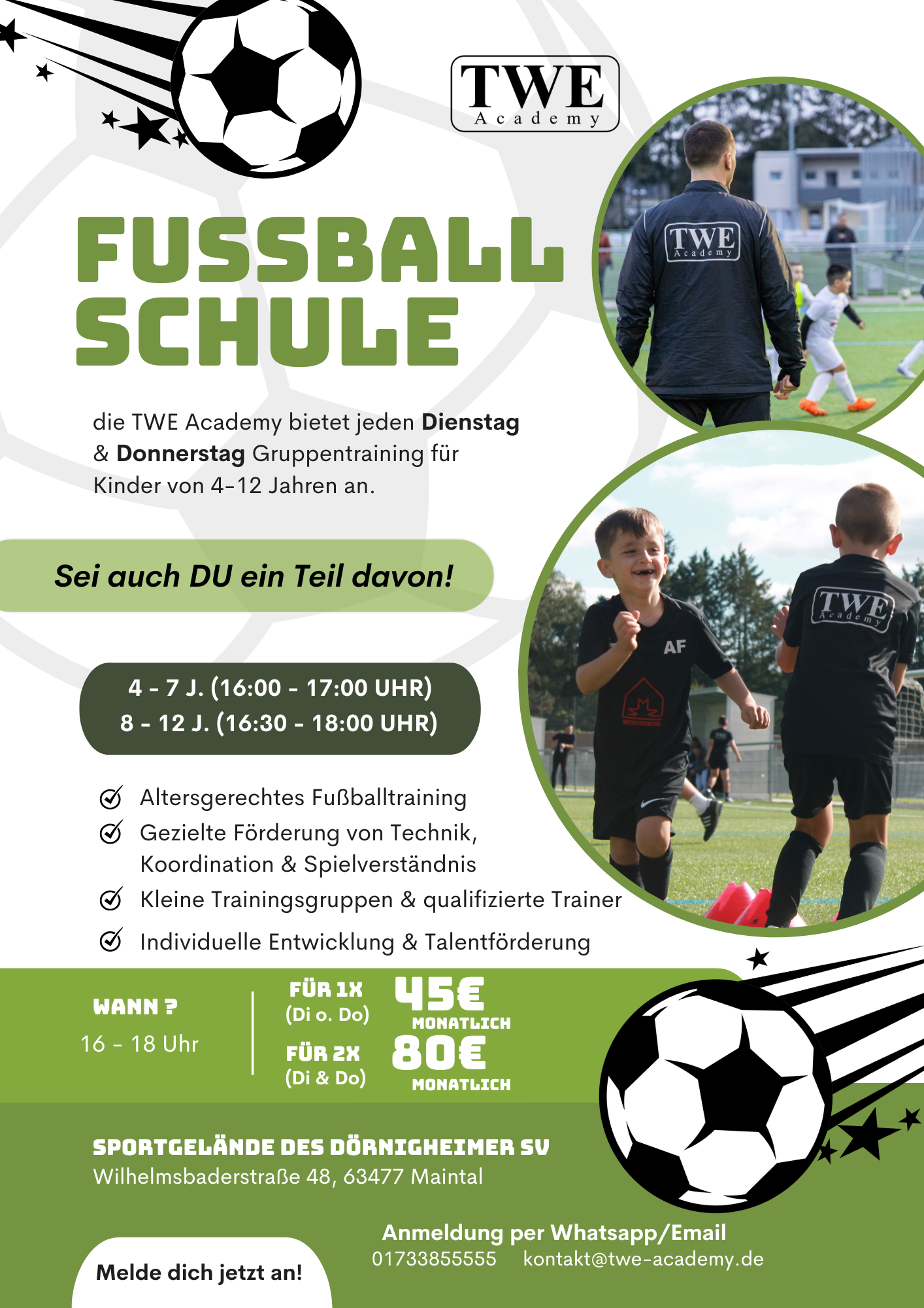 Das Training der TWE Academy findet jeden Dienstag und Donnerstag von 16:00 bis 18:00 Uhr statt. Die Kinder werden in zwei Altersgruppen eingeteilt: